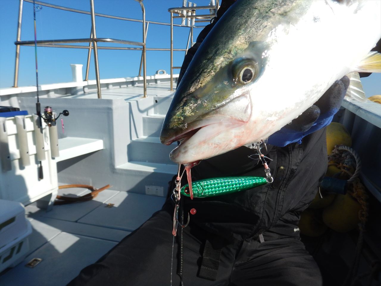 昨日、今日と昼頃になると、北東寄りの風がやや強く吹き出し、ウネリも出て来たので早上がりとなりましたが、ブリ系 1本、カンパチ (1.4キロ)1匹、ヤガラ etc ゲットして終了。