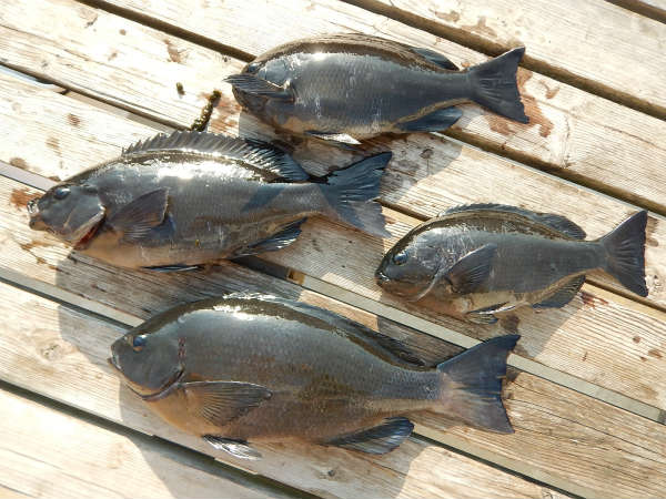 フグのエサ取り、サンノジ等が多かったようですが、メジナが釣れ出すとフグのエサ取りも無くなり、メジナが釣れなくなるとフグのエサ取りが交互にあったそうです。