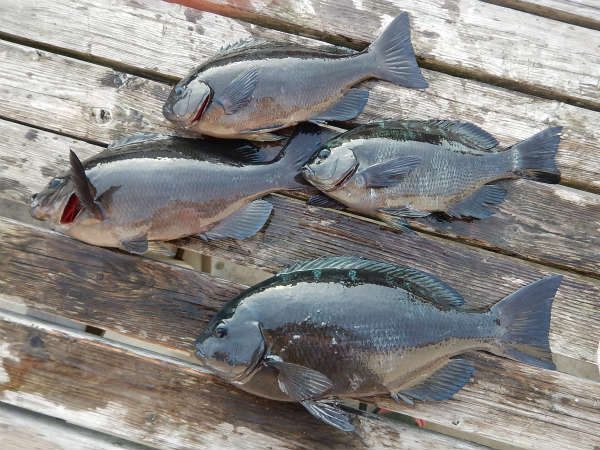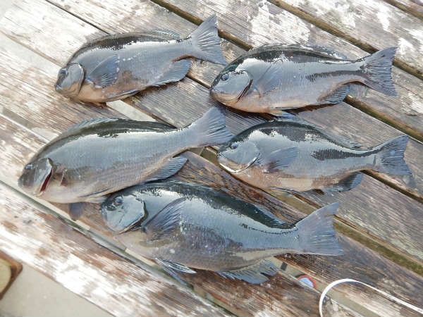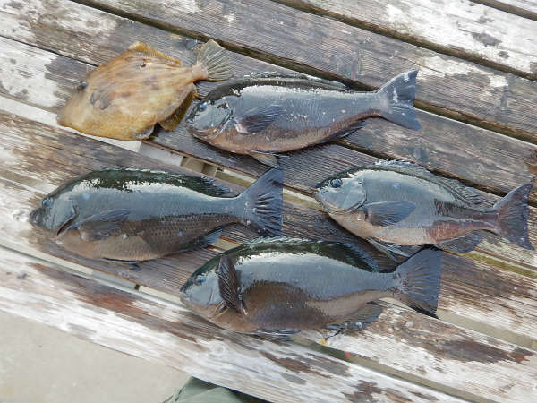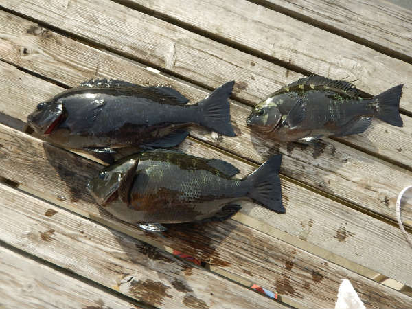 水温が下がって、今一つメジナの活性が悪く、メジナが釣れ出すまではフグのエサ取りが多かったようです。