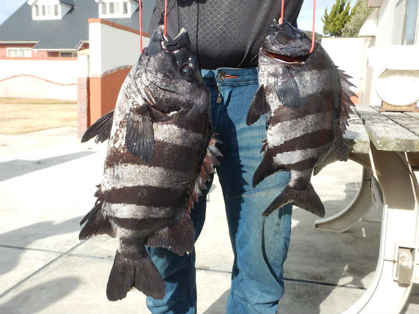 イシダイ 55.3㎝ 3.5㌔ 41.5㎝ 1.45㌔ エサはヤドカリ 第1投目、2投目で釣れたそうです。